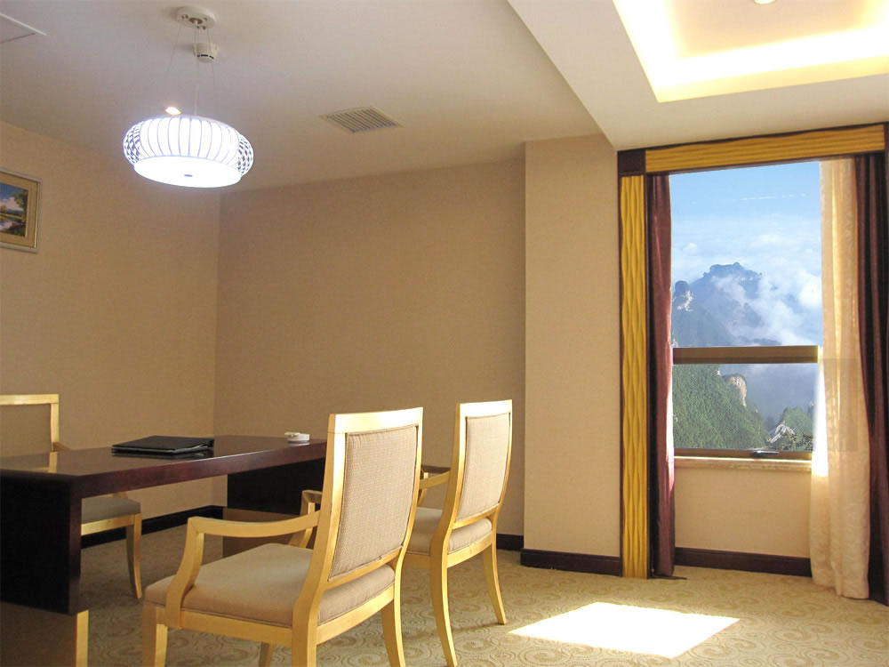【豪華客房】(3—16 樓)):擁有各類豪華客房共380間/套,其中頂樓為皇室套房,有空中花園,可遠(yuǎn)觀天門山景區(qū)。