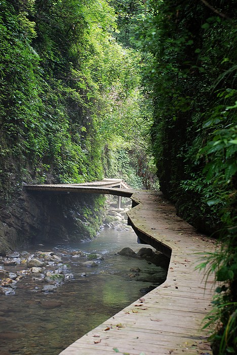 大峽谷中的飛瀑神泉比比皆是,一路游覽下來(lái),讓人目不暇接。峽谷里植被繁茂,空氣清新,涼爽舒適,溪水上彌漫著一層薄霧,宛如來(lái)到世外桃源,讓人煩惱頓消。 張家界大峽谷峽谷間是一條清幽的小溪,沿溪邊是用木板搭建的游道, 張家界大峽谷峽谷內(nèi)不僅有傳統(tǒng)的秀美自然風(fēng)光,還云集有三朝數(shù)代的歷史人文景觀,如記錄李自成與吳三桂慘烈決戰(zhàn)的“千人墳”古戰(zhàn)場(chǎng),反映湘西歷史特色的土匪洞及見證解放初期湘西人民靠天勞作在絕壁間挖鑿的“南方紅旗渠”等。