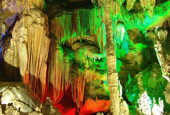 奇梁洞位于縣城北四公里處,屬典型的碳酸鹽巖洞,該洞以奇、秀、闊、幽四大特色著稱。洞長6000余米,共分五大景區(qū):即古戰(zhàn)場、畫廊、天堂、龍宮和陰陽河。洞中有山,奇梁洞圖片山中有洞,洞洞相連。它集奇巖巧石,流泉飛瀑于一洞,由千姿百態(tài)的石筍、石柱、石鐘乳構(gòu)成了一幅幅無比瑰麗的畫卷。一條小溪穿洞而過,水流平緩,燈光打在巖壁上,皺襞倒影在水中,如夢如幻。巖洞用五光十色的霓虹燈打在石筍、石幔及石花上,營造出一個流光溢彩的世界。在洞內(nèi)有一大廳,據(jù)傳是苗民糾集的地方,廳里立著一塊帶一個小孔的石頭,對著小孔“嗚嗚”地吹,整個大廳會回蕩著低沉的號角聲,當(dāng)年的苗民就是用這種方式傳令的。