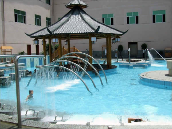 慈利縣萬(wàn)福溫泉 萬(wàn)福溫泉以福為文化為背景,建有四星級(jí)溫泉酒店(萬(wàn)福樓),有140多間標(biāo)準(zhǔn)雙人房、單人房、豪華套房及董事套房;中、大型會(huì)議室、多功能宴會(huì)廳3間;以福文化為基礎(chǔ),在萬(wàn)福溫泉的朝陽(yáng)地帶建設(shè)40多個(gè)功能各異、大小不一、錯(cuò)落有秩的室內(nèi)SPA池、露天溫泉池,另有貴賓休息廳、香薰屋、山頂溫泉沖浪、空中溫泉漂流等靜、動(dòng)態(tài)溫泉養(yǎng)生娛樂(lè)項(xiàng)目,把福文化溶入到自然的溫泉沐浴中,使廣大游客在福文化的環(huán)繞中享受大自然獨(dú)特的恩賜;餐飲部擁有300多人的用餐大廳及包房,推出湘菜系列、突出地方名菜、土家風(fēng)味,集百家之長(zhǎng),創(chuàng)獨(dú)特風(fēng)味。另有KTV、桑拿、保健、美容、棋牌、臺(tái)球、健身房、購(gòu)物中心等娛樂(lè)及其它配套設(shè)施。整個(gè)建筑別具一格,氣勢(shì)恢弘,功能完善,堪稱張家界溫泉旅游的又一大奇觀。