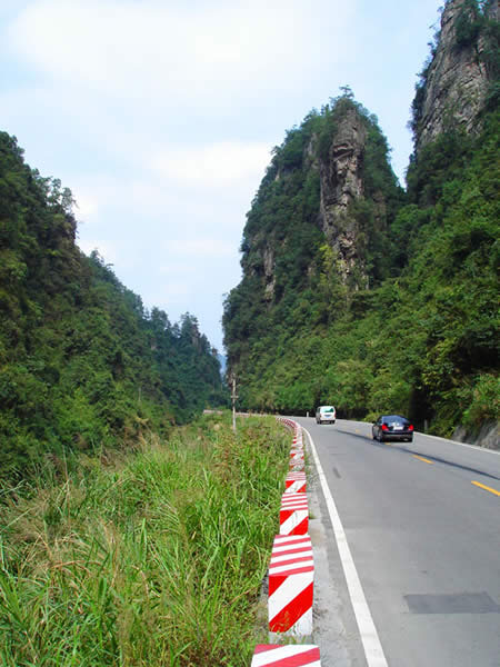 百丈峽圖片 百丈峽是武陵源風景名勝區(qū)通往張家界市的公路貫通整個峽谷,因有堵高近百丈的石壁,直插云霄,不敢仰視,故而得名。據(jù)《慈利縣志》載,索溪峪右得百丈峽,峽長三十公里……又相傳向王天子起義軍與官兵在此先后博殺一百仗,依此又名百仗峽。明代九永兵備胡桂芳,一生好游歷山川,來到百丈峽后題寫了一首七言詩:“峽高百丈洞云深,要識桃源此處尋;戎旅徐行風雪緊,誰將興盡類山蔭。”刻于峽內(nèi)道旁石壁上。