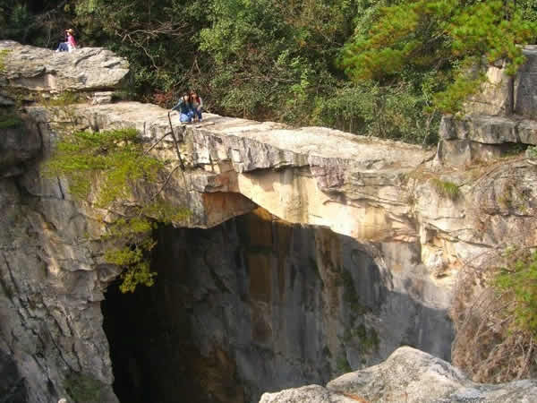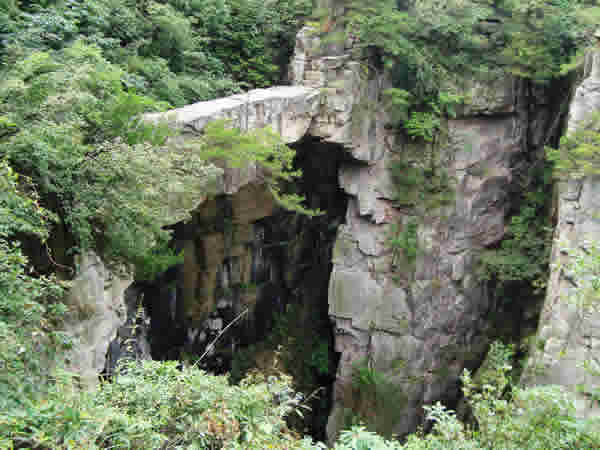| 仙人橋,長26米,寬1.6米,厚1米,高67米,飛架在兩處懸崖絕壁之間,鬼斧神工,驚險而奇特。
