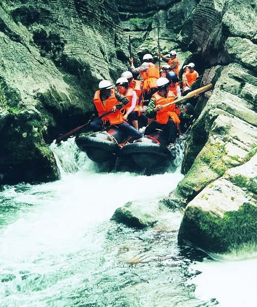西門峽 西門峽漂流全程6公里,屬萬(wàn)溶江流域,它發(fā)源于兩頭羊自然保護(hù)區(qū)的群山之中;沿途危崖夾峙,樹木蔥榮,水質(zhì)清澈、急流、險(xiǎn)灘星落棋布。共有虎跳澗、白龍灘、臥龍灘、青龍峽、鬼見愁、龍王灘等急流險(xiǎn)灘30余個(gè)。其中以青龍灘最為著名,它全長(zhǎng)400米,落差20余米。它和龍王灘一道堪稱國(guó)內(nèi)漂流之經(jīng)典。