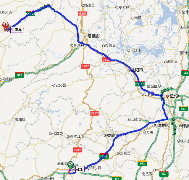 邵陽去張家界自駕車線路圖