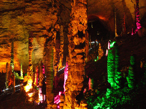 下 午: 游覽地下明珠——【黃龍洞景區(qū)】(門票已含,游覽時(shí)約2.5小時(shí)):黃龍洞享有“世界溶洞全能冠軍”之美譽(yù),2005年被評(píng)選為“中國最美的旅游溶洞”,洞中燈火闌珊、石筍林立,猶如一株株古木錯(cuò)節(jié)盤根、洞中有洞、洞中有河、無奇不有,真乃名副其實(shí)的“地下魔宮”,洞中還有投保一億元的石筍定海神針、響水河、龍王聚會(huì)廳、天仙水、天柱街等著名景點(diǎn)。
